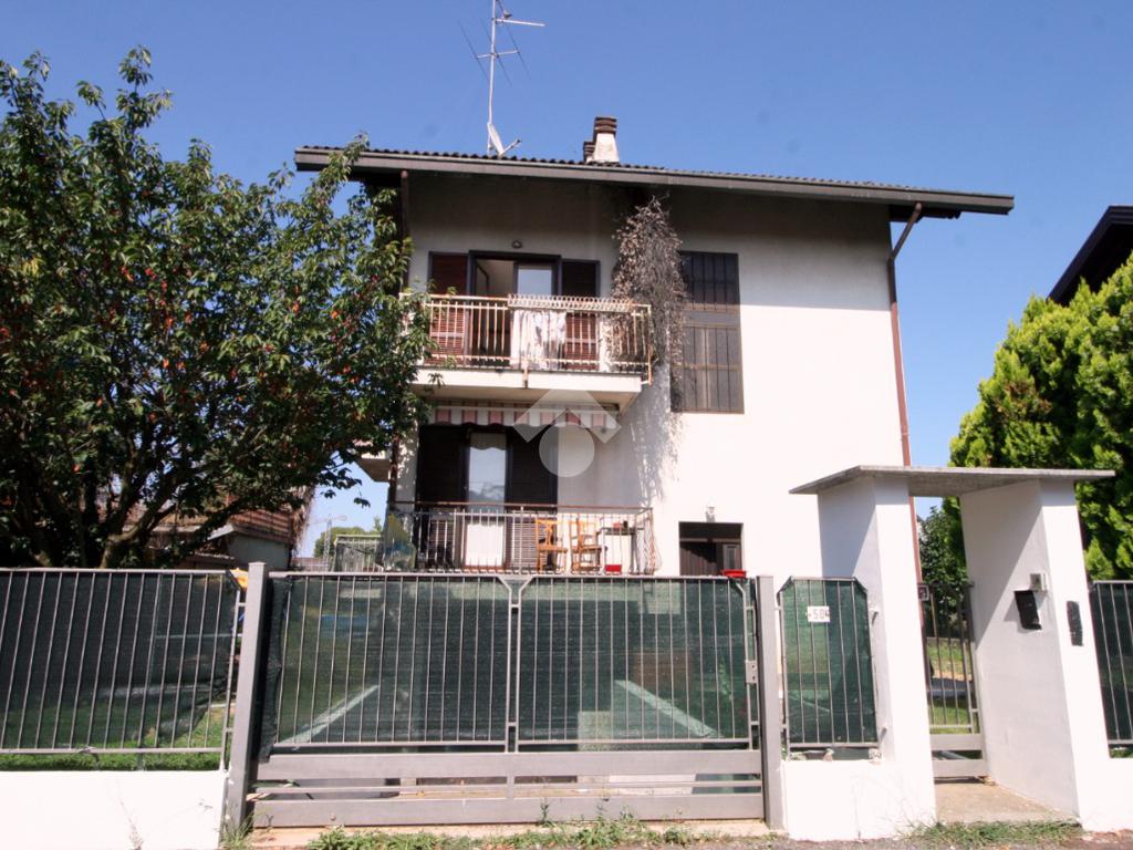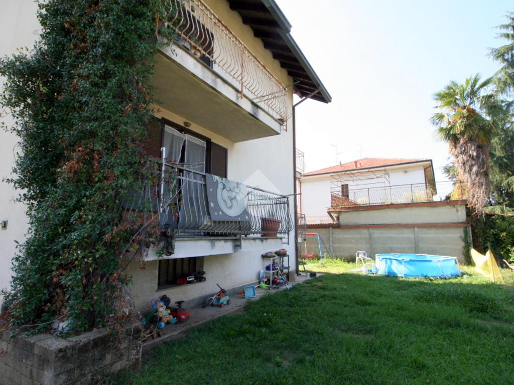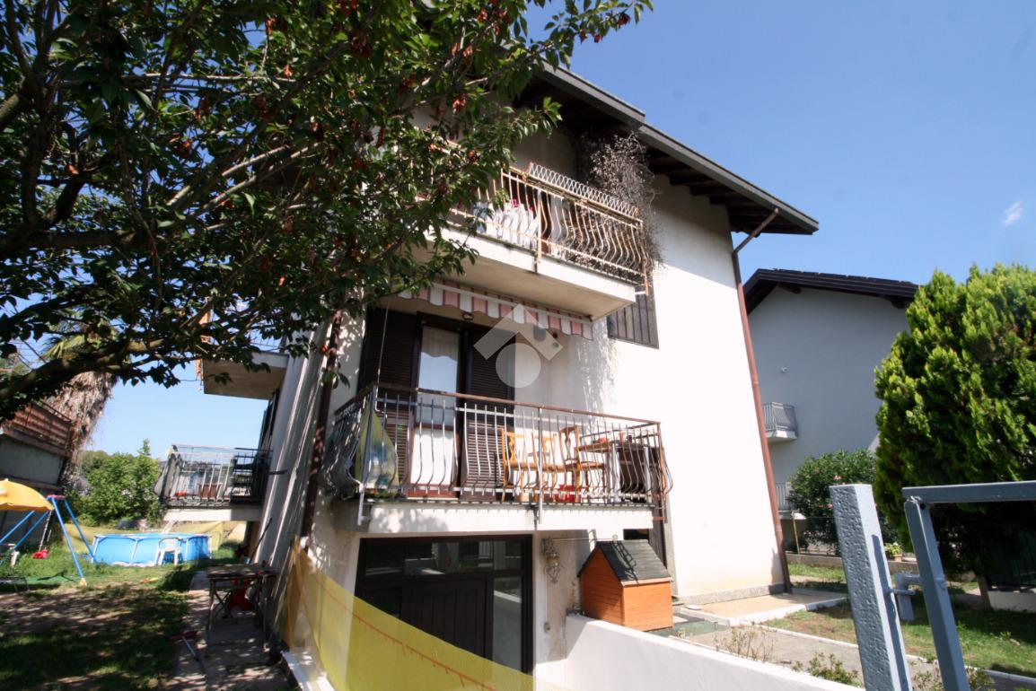 La soluzione è posizionata all'interno di una stradina chiusa e senza passaggio veicolare, in zona residenziale e tranquilla, comoda per raggiungere le principali vie di comunicazione. L'area esterna circonda l'abitazione sui quattro lati permettendo la totale indipendenza e occupa una superficie complessiva di circa 400 metri quadrati. Adatta a soddisfare le esigenze di una famiglia anche numerosa, è caratterizzata dalla presenza di vari ambienti spaziosi e luminosi. La proprietà è disposta su tre piani fuori terra oltre ad un piano interrato ed è predisposta sia per un'unica abitazione (con grande cucina, doppia sala, tre camere, tripli servizi, lavanderia e mansarda con cucina) oppure può essere suddivisa in due abitazioni indipendenti senza la necessità di interventi edlizi. Ogni piano è di circa 65 metri quadrati ed ogni locale è servito da un proprio balcone. La soluzione riporta finiture originali degli anni '80, ma scorrendo le immagini create dall'intelligenza artificiale (icona AI in basso a destra) è possibile avere un'idea di come possono cambiare gli ambienti con un tocco di modernità.